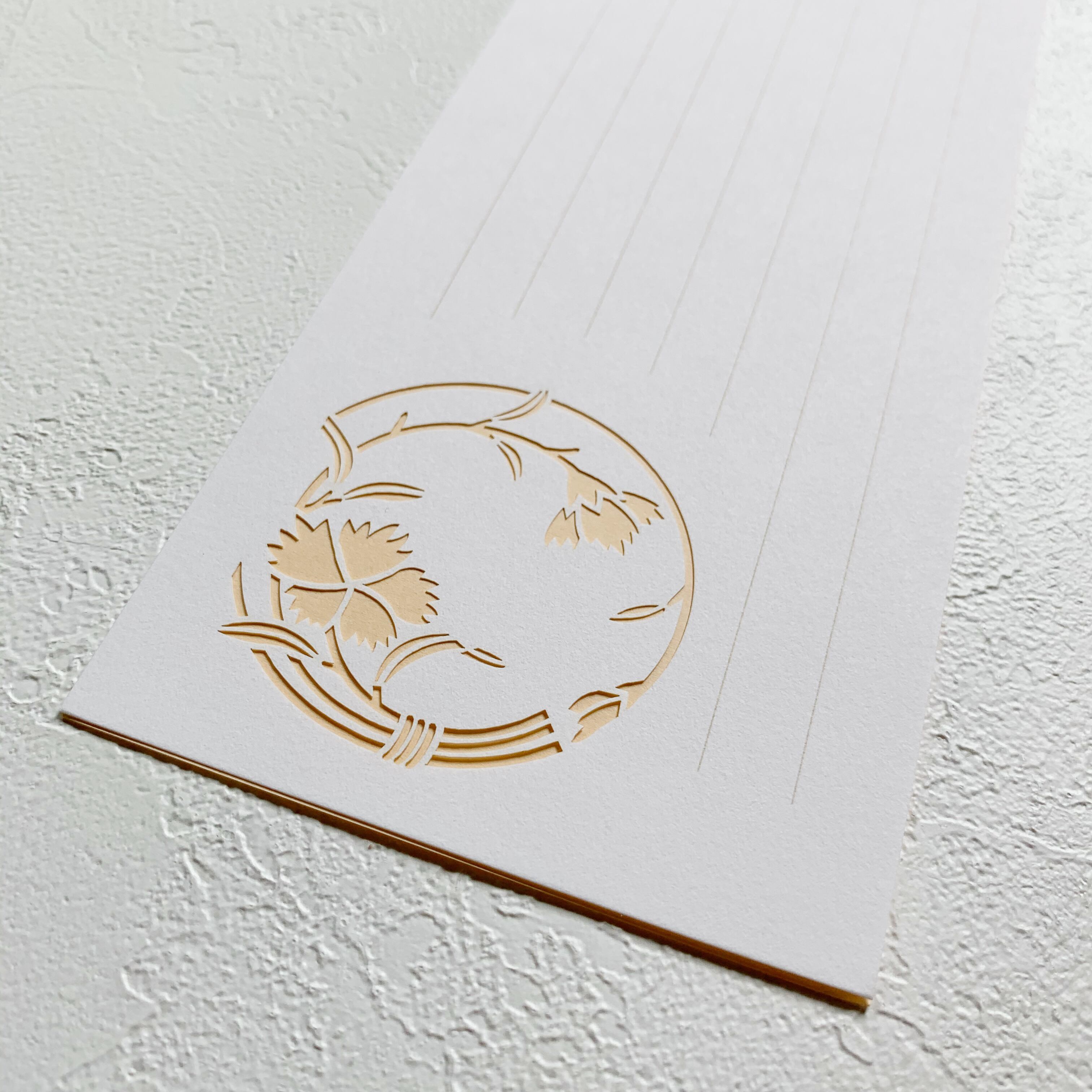 一筆箋"ひととせ”は季節を感じられる『家紋』を繊細にカットし、1枚1枚作っております。