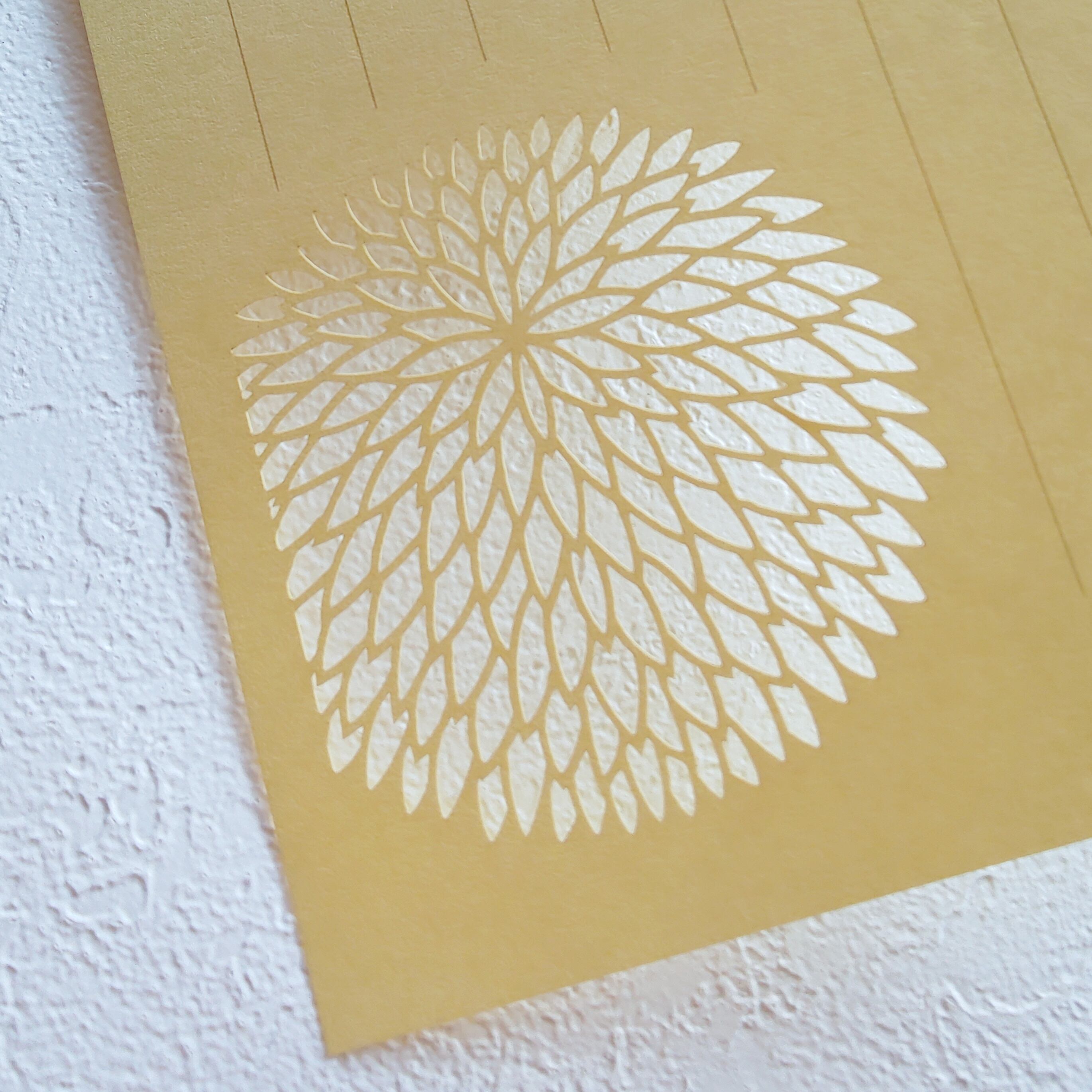 一筆箋"ひととせ”は季節を感じられる『家紋』を繊細にカットし、1枚1枚作っております。